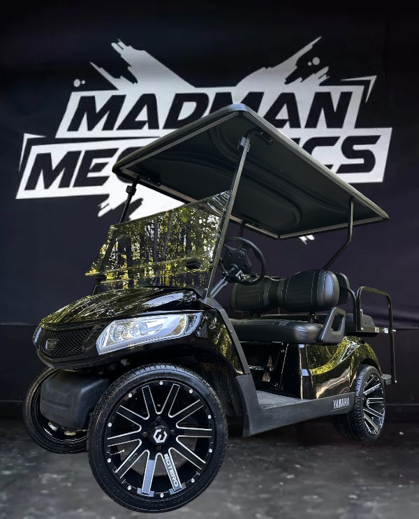 Black 2022 Yamaha Drive2 EFI gas 4 seater lifted golf cart